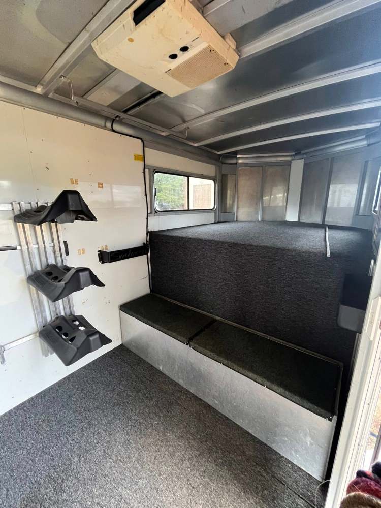 2 horse straight load with ramp, Aluminum floor with mats, padded butt and chest bars, sliding windows, front escape doors on both sides, 2 lights and vents