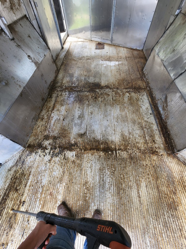 Have you looked at your trailer floor recently? Our horses and other livestock often have to stay in the trailer for extended periods of time. Over time, the urine and manure can deteriorate the aluminum or wood floors in trailers. How do we prevent this from happening? One way is making sure to thoroughly clean your trailer on a regular basis. This involves removing all bedding and pulling the mats to clean under them. Another way is to use a floor coating specifically designed to protect trailers from corroding. Inspecting the floors thoroughly should be part your annual inspection, and is included if Allison Creek does your inspection.