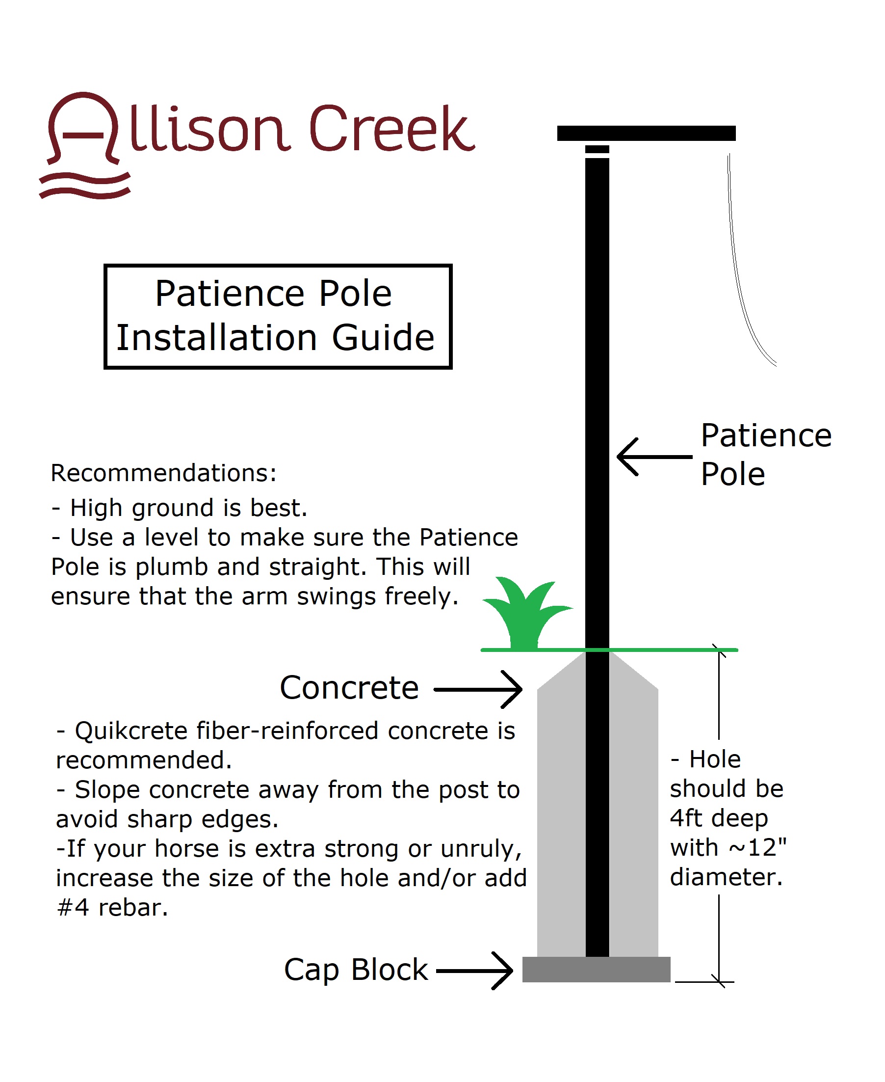 - We guarantee the workmanship on our Patience Poles for five years. Should your horse(s) break our Patience Poles, Allison Creek will provide a replacement or provide the replacement parts at no cost to you.